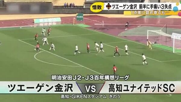 ツエーゲン金沢はアウェーで高知と対戦、あと一歩及ばず悔しい敗戦となりました。