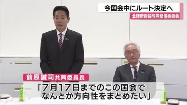 北陸新幹線の敦賀以西をめぐり、自民・維新による与党の整備委員会がけさ開かれ、今国会中にルートを決めることで一致しました。