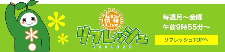 ★「石川さん情報LIVE リフレッシュ」は2019年12月23日(月)〜2020年1月3日(金)まで放送を休止致します。来年度の放送は1月6日(月)より再開いたします。