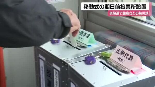 輪島市や珠洲市など、能登半島地震の被災地では、移動手段を持たない高齢者や仮設住宅に住民票を移していない人などのために有権者であれば誰でも投票できる移動式の期日前投票所を設けています。