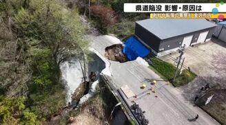 県によりますと、道路の下にある岩盤を素掘りした水路に森下川の支流が流れていてそれによって盛り土がけずれ道路が崩落したのでないかと言うことです。今年1月の一部崩落後、3回にわたって目視などで点検しましたが異常は見つかりませんでした。