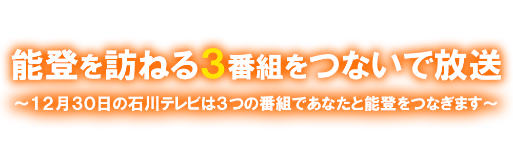 震災から間もなく2年を迎えるこの年末に、復興への祈りと、「能登を忘れない」という気持ちを込めて、石川テレビでは復興の歩みと能登の現状を伝える番組を放送することにしました。