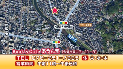 金沢市東山3丁目にあるブックカフェ「あうん堂」。