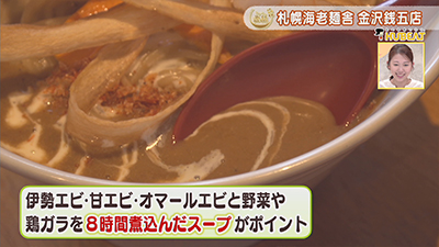 金沢市普正寺町にある『札幌海老麺舎 金沢銭五店』に西岡アナがお邪魔しました。