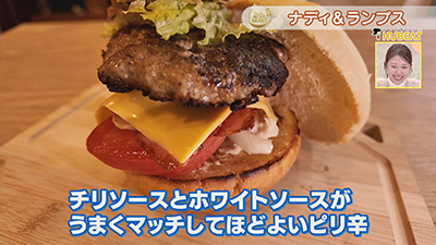 チリソースとホワイトソースが入ったオリジナルのハンバーガー。