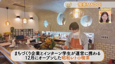小松駅前にある喫茶MADOIは、まちづくり企業とインターンの学生が運営に携わる、昭和レトロな喫茶店です。