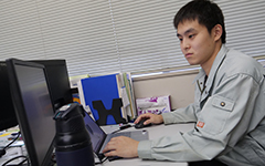 現在大学院で取り組んでいるのは、プラスチック製品をつくる金型の加工に関する研究です。難削材の高精度・高効率加工をめざしているもので、ものづくりを支えるやりがいのあるテーマだと話します。今夏には、研究成果を海外で発表。 |