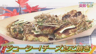 タコは、1cm角に切る。チーズは、6等分に切る。